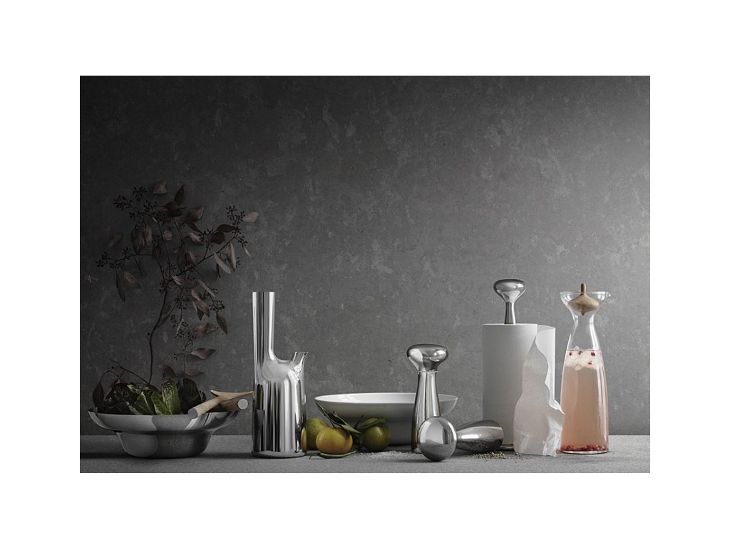 Suportul pentru prosoape din hârtie Alfredo este realizat din oțel inoxidabil. În partea de jos a suportului se află un magnet, ceea ce facilitează înlocuirea ruloului din hârtie vechi cu unul nou. Formele asemănătoare ale suportului și ale râșnițelor pentru sare și piper creează din acestea o combinație perfectă pentru bucătăria dvs. Marca GEORG JENSEN