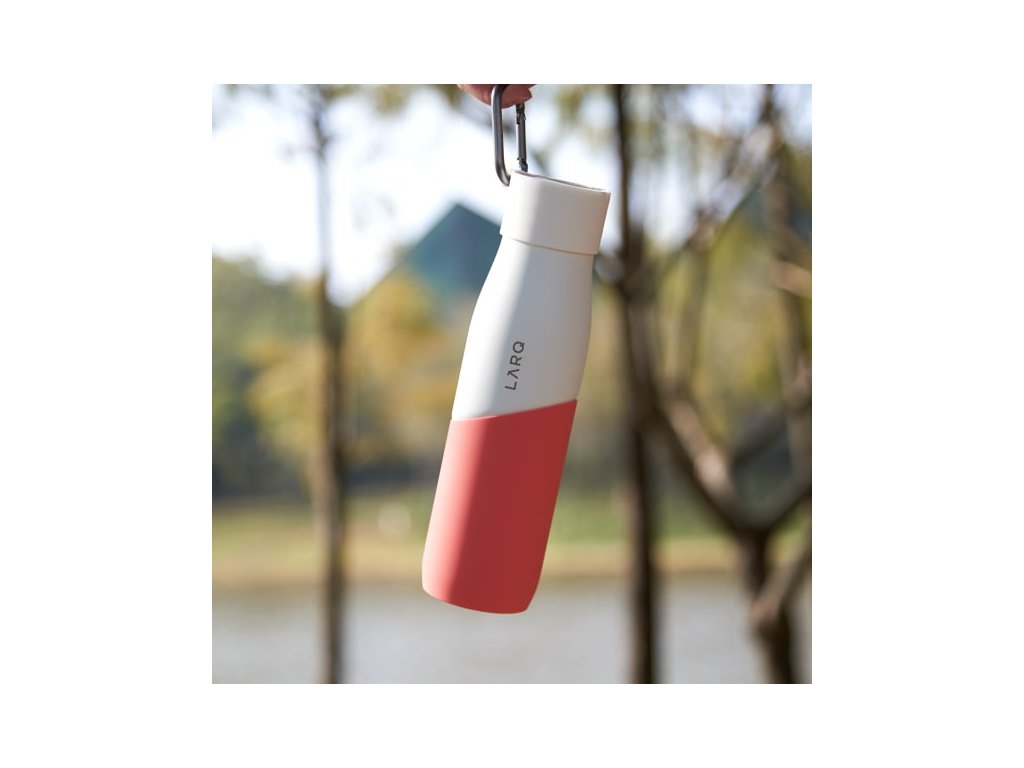 Cureaua de silicon este completată de o carabină, astfel încât sticla va fi ușor de transportat în mână sau o puteți atașa la rucsac cu un singur clic. Suportul este produs în două culori - alb și negru și este compatibil cu toate sticlele LARQ.