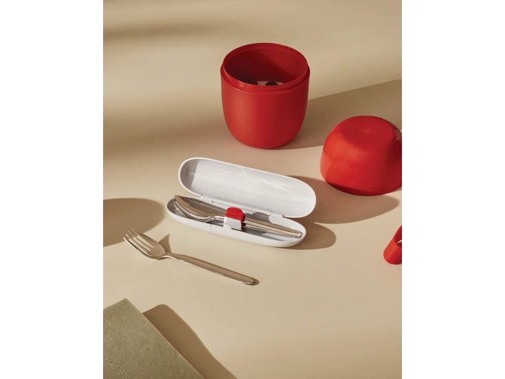 Cu tacâmurile, îți poți lua prânzul cu tine oriunde și să te bucuri de el nu numai la birou sau la școală, ci și în parc sau lângă apă. Tacâmurile de călătorie de la marca Alessi nu sunt doar un ajutor practic, ci și un accesoriu necesar.