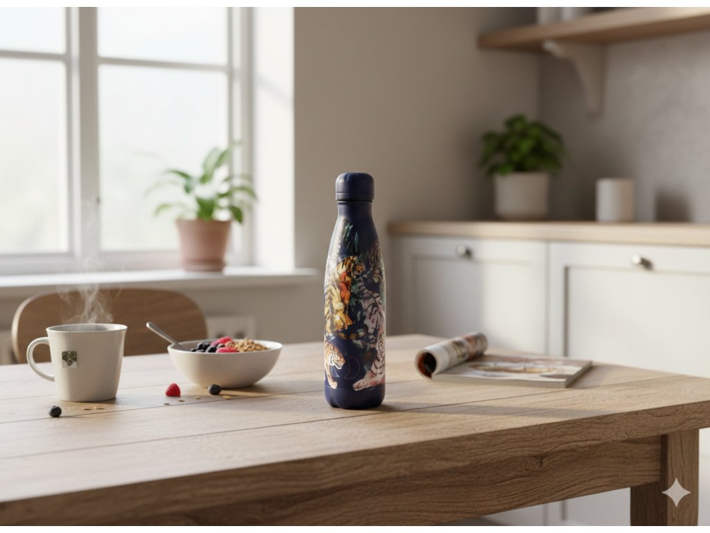 Chilly's Bottle este o sticlă de apă elegantă, concepută pentru a menține băuturile calde până la 12 ore sau reci până la 24 de ore. Sticla este fabricată din oțel inoxidabil de înaltă calitate și are o izolație în vid cu pereți dubli, care creează un spațiu fără aer între cei doi pereți, menținând o temperatură constantă a băuturii.