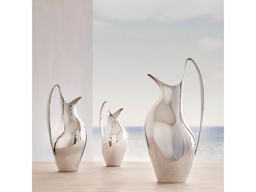 Ulciorul Henning Koppel, de mărime medie, este fratele mijlociu al uneia dintre lucrările legendare, proiectate de Henning Koppel, din seria Living Georg Jensen. Datorită formei subțiri și a curbelor elegante, ulciorul va deveni o piesă de design în bucătăria dvs., iar datorită capacității de 1,2 l va fi un ajutor practic pentru servirea apei sau a vinului. Poate fi folosită, de asemenea, ca vază exclusivă pentru flori.