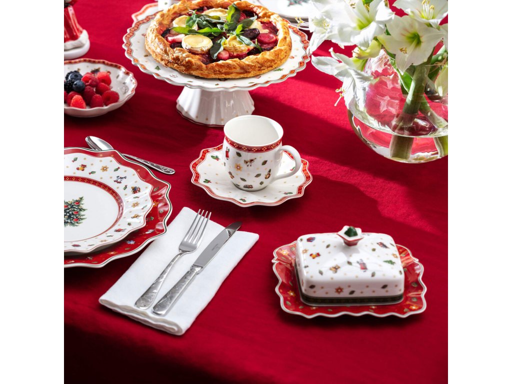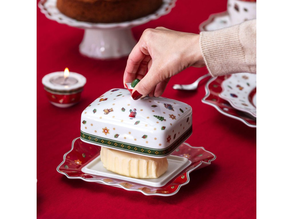 Untiera Toys Delight de la Villeroy & Boch este un obiect frumos și practic pentru masa ta festivă. Această piesă elegantă este decorată cu motive emblematice de Crăciun care aduc atmosfera nostalgică a unui Crăciun tradițional chiar pe masa ta. Untiera este concepută pentru a păstra untul proaspăt și în același timp va deveni un element elegant al mesei tale.