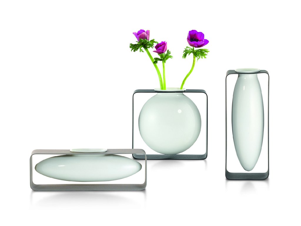 Vază ceramică FLOAT este amplasată într-un cadru de oțel și poate fi scoasă pentru a fi spălată. Vaza Float este disponibilă în 3 forme diferite, iar împreună creează un decor armonios.