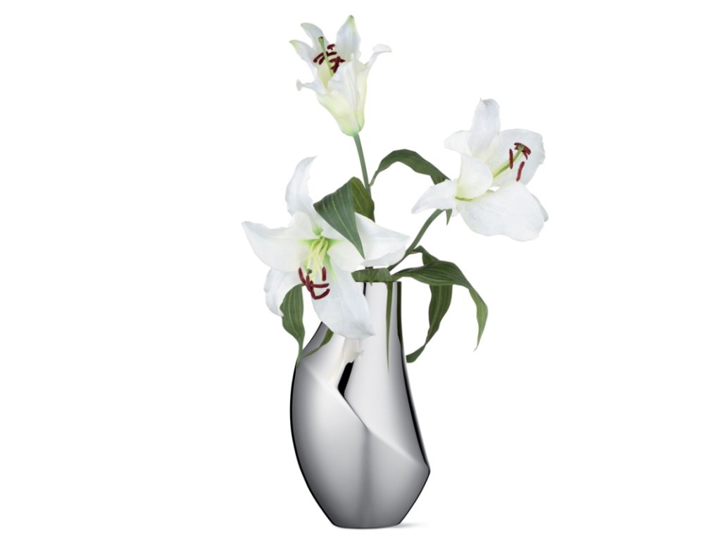 Vaza Flora, realizată din oțel inoxidabil, este apogeul eleganței. Designerul s-a inspirat din forma grațioasă a corpului feminin. Curbele acestei vaze vor stimula imaginația și vor crea o atmosferă specială, indiferent dacă așezați vaza pe masă sau sertarul din sufragerie. O puteți combina cu altă vază cu același design, dar de dimensiuni diferite. Sunt disponibile în trei mărimi. Marca GEORG JENSEN