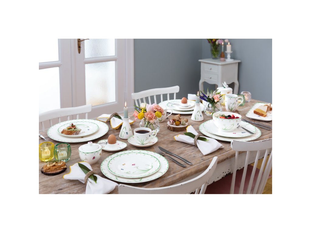 După o iarnă lungă natura iarăși renaște. Au înflorit ghioceii, iar fluturii colorați își avântă aripile peste câmpurile înflorite. Acum puteți savura o ceașcă de cafea fierbinte din serviciul de masă Colourful Spring cu motive asemănătoare, de la renumita marcă Villeroy & Boch, care vă vor aduce un sentiment de armonie și bucurie.